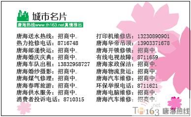 投放百元,还你千元效果-唐海热线城市名片招商中。。2009/4/14 15:18:08